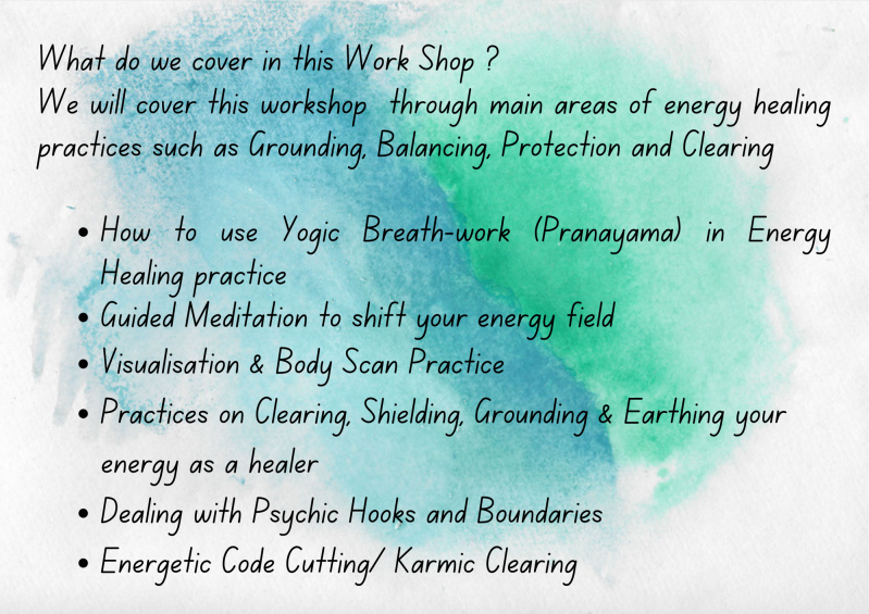 - Day 1 : How to use Yogic Breath-work (Pranayama) in Energy Healing practice